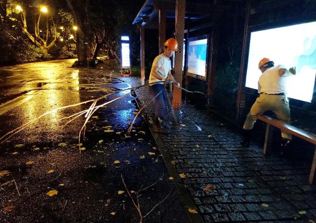 巡检防控,储备物资,确保解决隐患。为切实做好台风期间运营生产的正常进行,市公交集团积极做好应急物资准备工作,配备抽水泵108台,发电机29台,编织袋 4000余条。物资集团对171余处窨井、管道、排水沟进行了疏通;对116棵树木、58处广告牌进行了加固;对315处路灯设施(灯杆、管线、箱变等)进行了全面排查以及电气线路的漏电检测;对场区易积水点、小区、商业楼等地下车库、泵房设施进行了定时巡检。出租集团加强动态营运管理,强化对道路积水、车站码头客流情况的监控,及时将信息上报并通过车站GPS 向司机发送,提醒司机,把负面影响降到最低;传媒集团上路对市区、景区、滨江等区域候车亭棚等户外设施牢固度、电器线路进行联检,累计检查维护亭棚385余处,确保设施安全;置业公司重点排查在建公交停保基地的钢架消防楼梯8个、活动房32幢、围墙450米、积水点4处、塔吊8台,对所有在建工地的脚手架进行检查并加固;要求各现场项目部加强值班,其余人员全部撤出工棚至附近避难所,截至8月9日晚上21:00,共计撤出363名工地施工人员,同时对所有项目的活动房进行切断电源和断水处理。