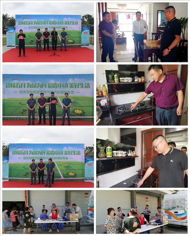 5月26日,市燃气集团下属建德杭燃燃气有限公司在建德市大同镇新广场召开“燃情五月 为城为民 稻香小镇 美好生活”建德市大同镇管道天然气通气新闻发布会。发布会邀请了大同镇党委委员黄光辉、大同镇人大副主席苏雪平、建德市市政园林管理局副局长汪会荣、杭州市城乡设计院、杭州燃气AYX爱体育安装有限公司、浙江蟠龙AYX爱体育管理有限公司等共计约30人参加,建德电视台、今日建德等新闻媒体也来到活动现场,发布会由建德杭燃总经理助理仇飞主持。