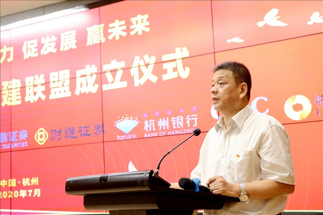 7月27日,“之江红”党建联盟成立仪式在杭州四季青街道党群服务中心举行。bob体育平台下载手机版党委副书记、副总经理范川出席启动仪式并发表讲话。资产管理集团党委书记、董事长刘祥剑致欢迎辞。浙江工业大学管理学院、浙江财经大学创业学院、中信证券浙江分公司、财通证券出资银行部、杭州银行营业部、杭州热联集团、杭州CSGO投注官网资产管理集团等联盟单位代表共50余人参加。