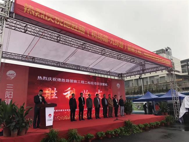 11月16日上午,市BET356在线体育投注发展集团举行德胜路(机场路-九环路)管廊AYX爱体育Ⅱ标段项目顶管机始发仪式。bob综合体育官网app下载委管廊办副主任李强,市质监总站副站长熊永光,集团公司副总经理吴桂才,市BET356在线体育投注发展集团班子成员以及管廊施工单位三阳建筑、萧宏集团,监理单位明康监理的相关负责人出席始发仪式。